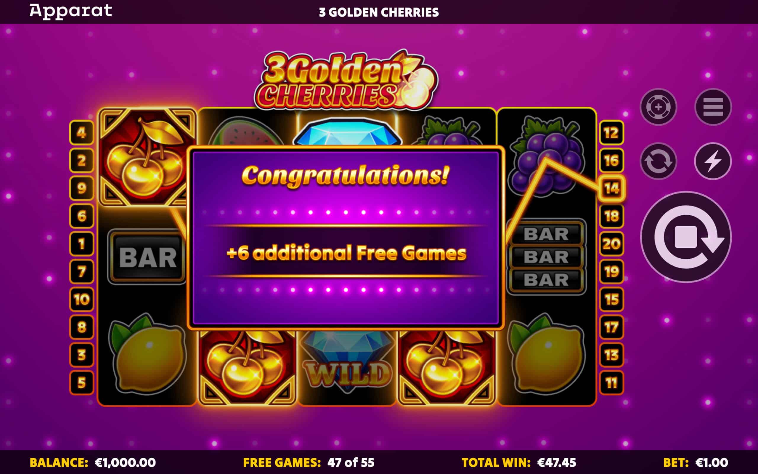 During Free Games, Cherry wins can trigger even more Free Games!
