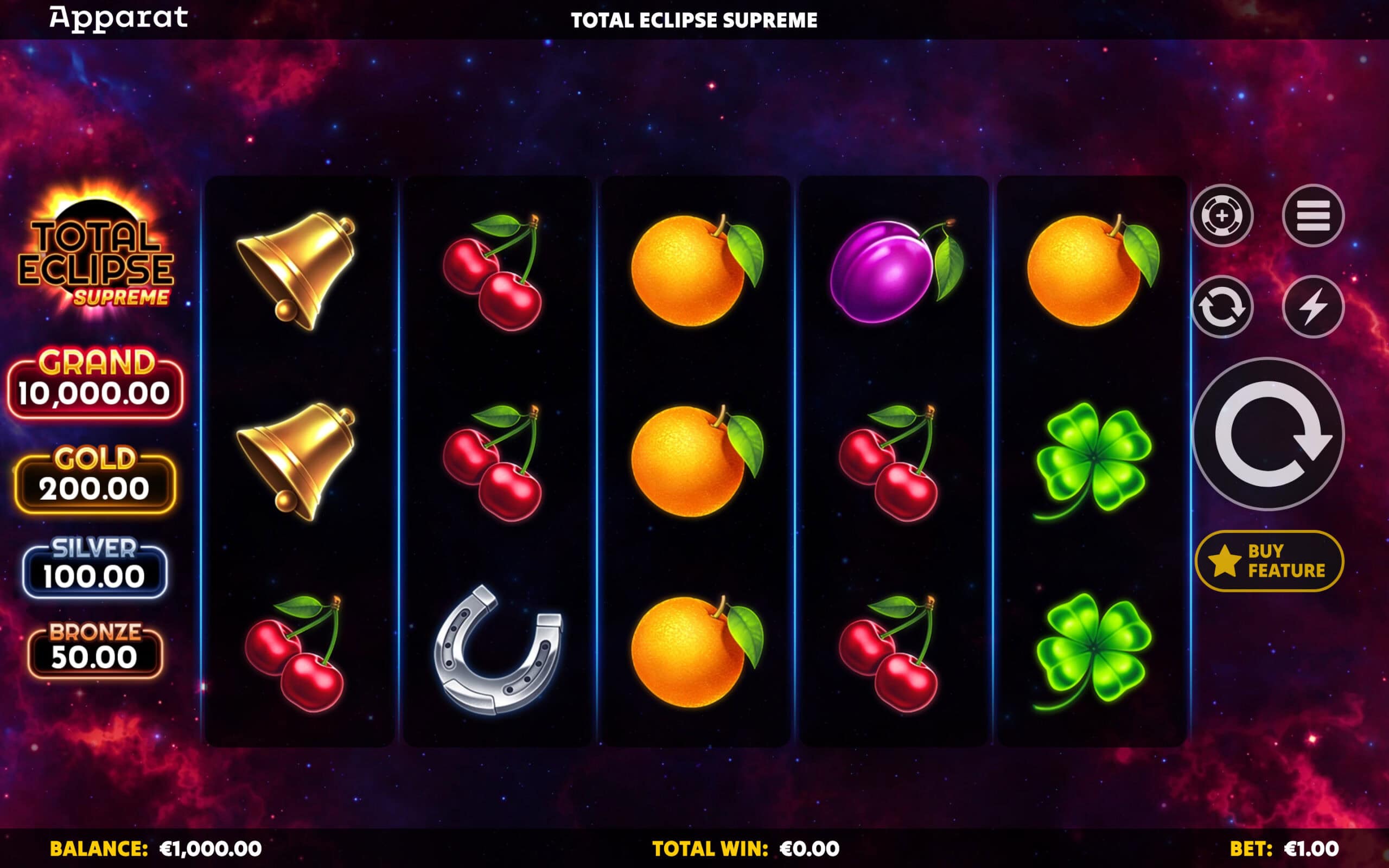 | Theme | Fruits, Space, Hold&Spin, Bonus Buy, Wild |