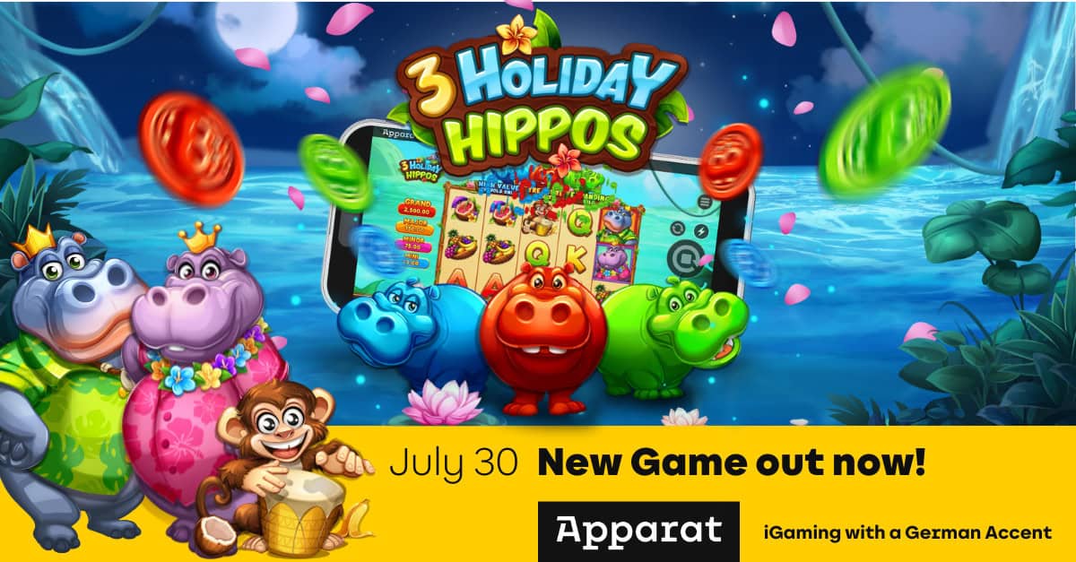 Our latest title, 3 Holiday Hippos, is live! Bringing high-volatility entertainment to the reels with a bold 5×3 setup, 20 paylines, and a maximum exposure of 4500x. 🦛🌴