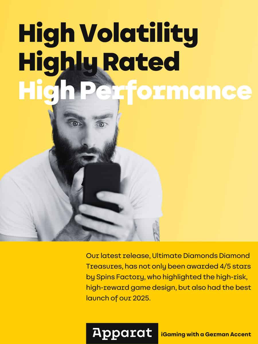 Our latest release, Ultimate Diamonds Diamond Treasures, has been awarded 4/5 stars by Spinsfactory, who highlighted the slot as a strong example of focused, high-risk, high-reward game design. 👏